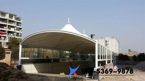 膜結(jié)構(gòu)出入口膜結(jié)構(gòu)建筑采用的是被稱為輕型鋼材的膜材料搭配鋼結(jié)構(gòu)支撐材料而成的新型建筑物,膜材的優(yōu)劣直接決定了建筑的使用壽命和工程質(zhì)量。
